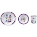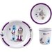 W zestawie znajdują się naczynia potrzebne do pierwszych samodzielnych posiłków twojego maluszka: głęboki talerzyk, miseczka oraz kubek.