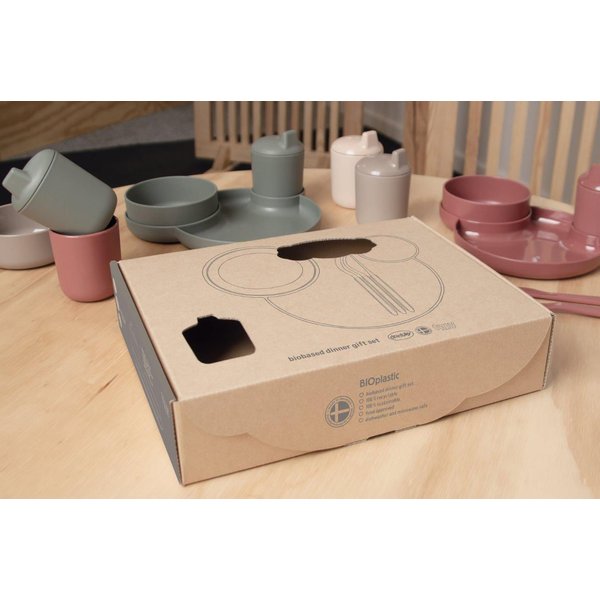 Wszystkie elementy zestawu zostały wykonane z certyfikowanego tworzywa sztucznego pochodzącego z przetworzonej biobazy - tzw. Bio PP. Materiał ten jest bardzo wytrzymały, odporny na wysoką i niską temperaturę, w pełni ekologiczny i nadaje się do recyklingu. Codzienne użytkowanie ułatwia możliwość mycia w zmywarce oraz podgrzewania w mikrofalówce.