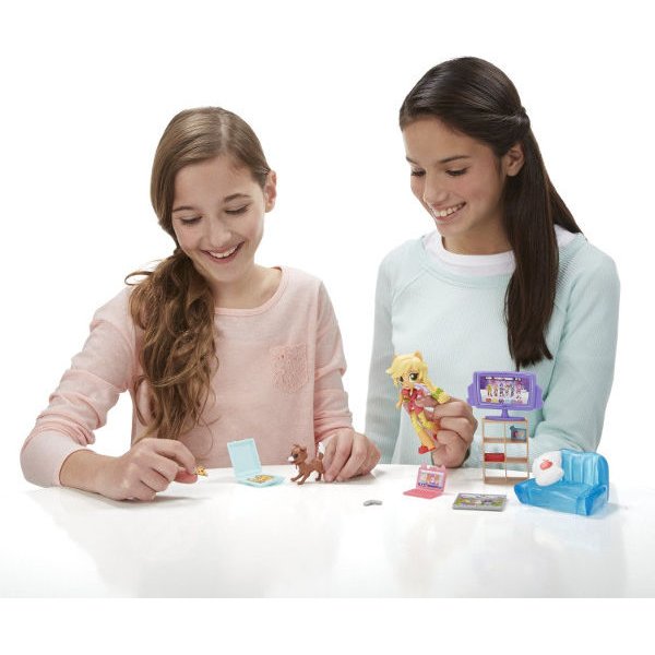 Applejack urządza piżama party! Przygotowała grę planszową, playstation, laptopa oraz pyszną pizzę na kolację. Zaproś wszystkie przyjaciółki i baw się razem z Equestria Girls!