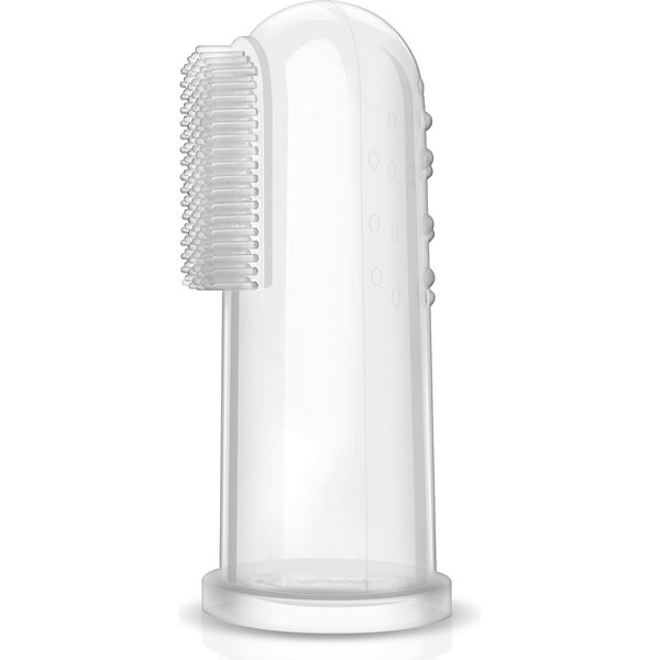 Silikonowa szczoteczka z wypustkami zapewni higienę pierwszym ząbkom maluszka. Wypustki do masażu dziąseł wspomogą maluszka w okresie ząbkowania. Łatwa do sterylizacji.