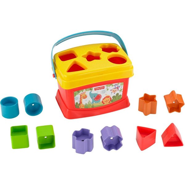 Napełnianie wiaderka klockami, wyrzucanie ich i rozpoczynanie całej zabawy na nowo doskonali koordynację wzrokowo-manualną. Dziecko może również przejść do segregowania i układania kloców w stosiki, dzięki czemu nauczy się rozpoznawać i dopasowywać kształty! Te klocki to pokonywanie kolejnych poziomów trudności. Klocki mają podstawę w kształcie koła, gwiazdki, trójkąta, kwadratu i krzyżyka.