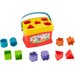 Dziesięć jaskrawych klocków można wrzucać do otwartego wiaderka lub przez pokrywkę umożliwiającą dopasowywanie ich według kształtów.