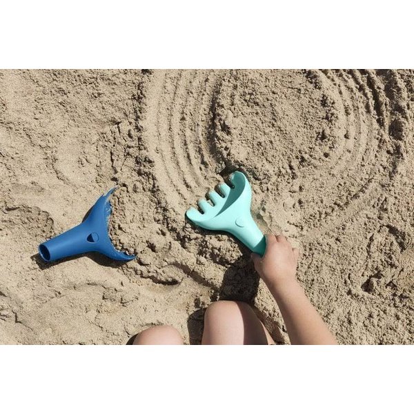 Zestaw plażowy łopatka grabki foremki w woreczku Quut