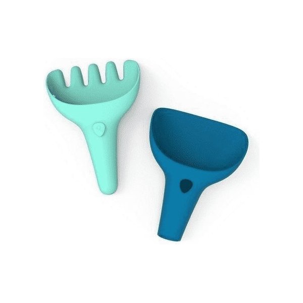 - Grabki, które tworzą zestaw z łopatką.Świetnie sprawdza się do pierwszych prac w ogrodzie oraz podczas budowania zamku na plaży.