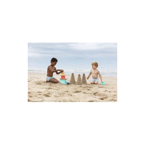 - 3 foremki, które zwężają się ku górze i po połączeniu tworzą wieżę. Ich budowa pozwala na wsadzenie ich jedna do drugiej co pozwala zaoszczędzić miejsce na inne zabawki czy gadżety. Nadają się nie tylko do zabawy w piaskownicy, ale również do wody czy śniegu. Można ich również używać do piasku kinetycznego.