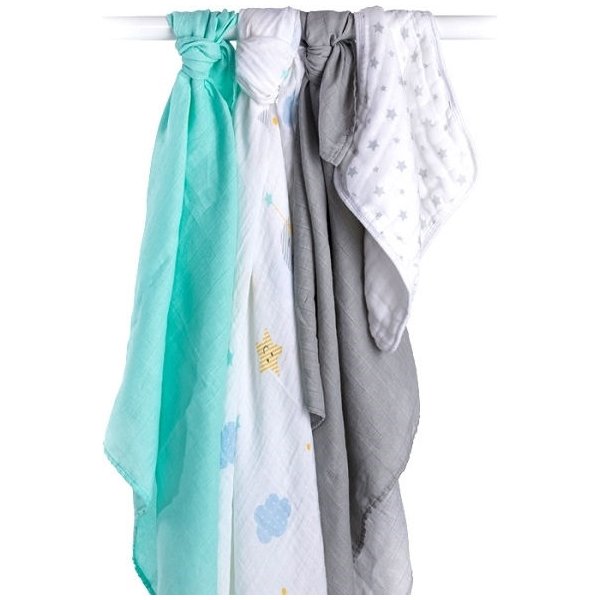 W zestawie znajduje się kocyk muślinowy o dużych rozmiarach, który sprawi się także jako prześcieradło, otulacz, czy osłona wózka w upalne dni, 2 mini pieluszki, które zastąpią tradycyjne pieluchy tetrowe oraz delikatna myjka do kąpieli. To niezbędny zestaw dla malucha!