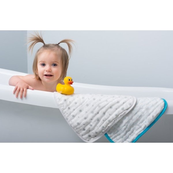 - 1 myjka muślinowa w kolorze białym w szare gwiazdki