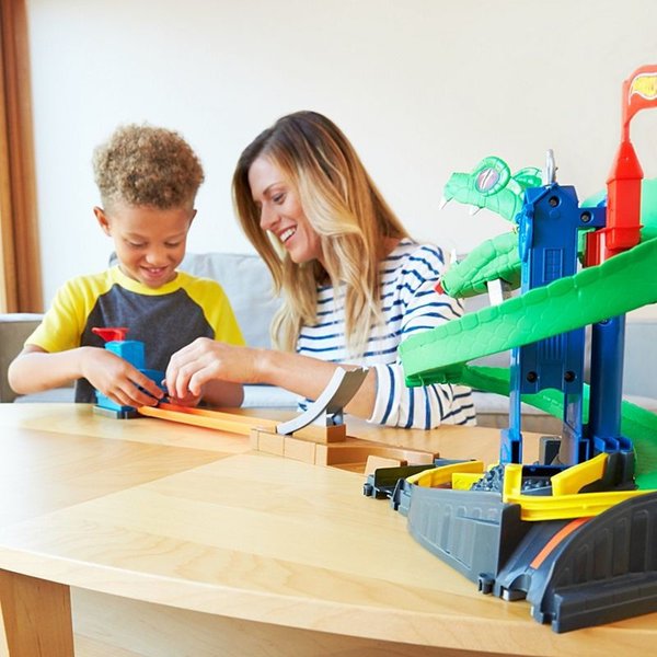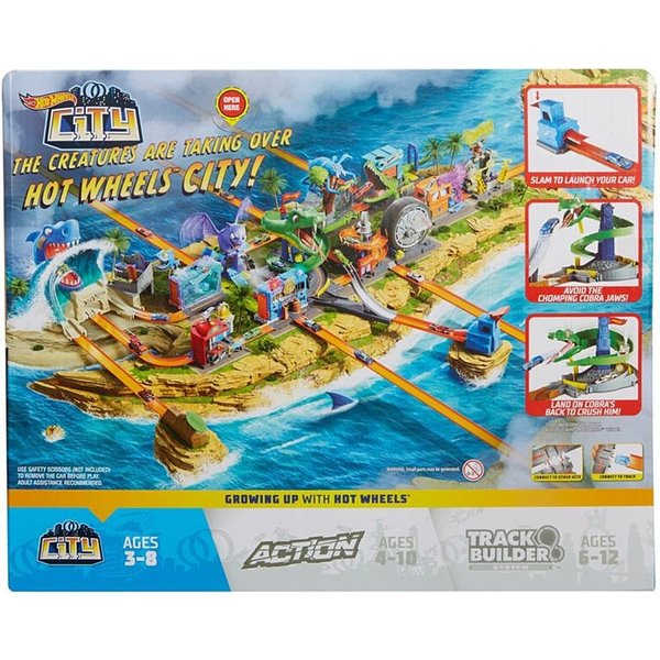 Zestaw można łączyć z innymi zestawami z serii, tworząc jeszcze ciekawsze trasy dla swojej kolekcji samochodzików Hot Wheels. Pozostałe zestawy sprzedawane oddzielnie.