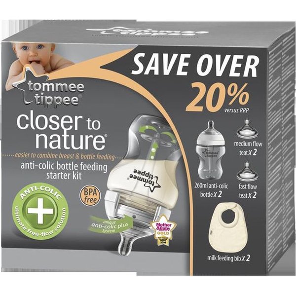 - Bogato wyposażony zestaw zawiera: 2 butelki antykolkowe Anti-Colic Plus 260 ml, 2 smoczki antykolkowe Anti-Colic Plus o średnim przepływie, 2 smoczki antykolkowe Anti-Colic Plus o szybkim przepływie, 2 śliniaki Closer to Nature®