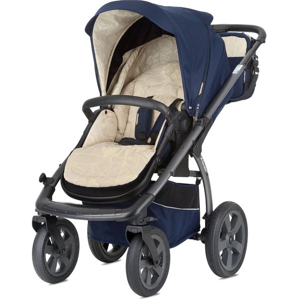 - wózek spacerowy X-Move w kolorze DESERT TEAM (granatowy z beżową wyściółką), wbudowaną moskitierą, okryciem na nóżki,pałąkiem oraz zintegrowanymi adapterami do wpięcia gondoli
