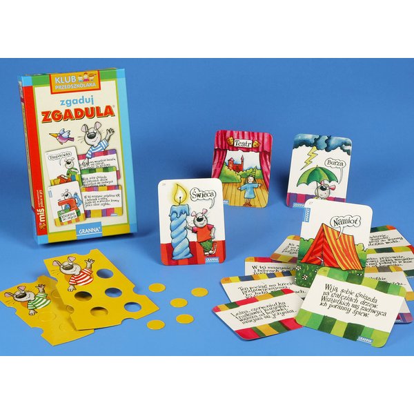 Zgaduj-zgadula, czyli osoba, która umie czytać, odczytuje zagadki, a maluchy zgadują. Podczas gry każdy uczestnik otrzymuje serek z dziurkami. Każda rozwiązana zagadka pozwala na zakrycie jednej dziurki - wygra ten, kto pierwszy zakryje wszystkie.