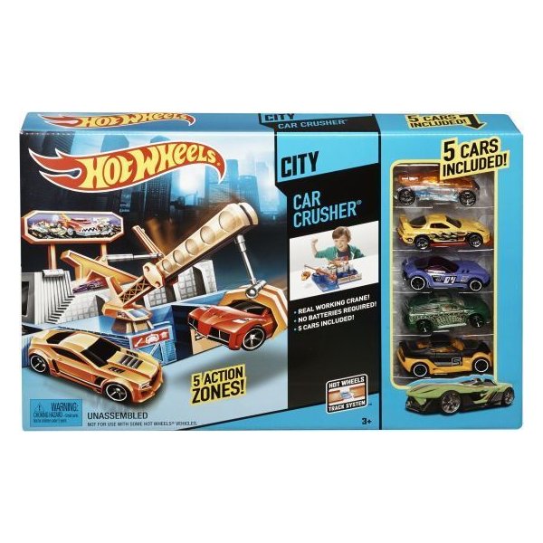 Zgniatacz pojazdów + 5 autek Hot Wheels