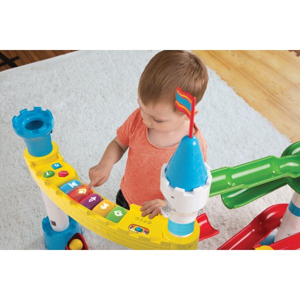 Zabawka zapewnia dużo ruchu, dziecko biega dookoła zamku, schyla się po piłki, wrzuca je z powrotem do wieży, kuca, przyglądając się turlającym się piłkom. Zabawka posiada także wbudowane pianinko z opcją wydawania pojedynczych dźwięków lub wygrywania całych melodii.